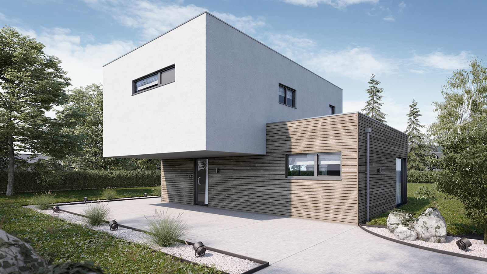 La maison clé sur porte Elyora est conçue en 2 surfaces rectangulaires imbriquées.